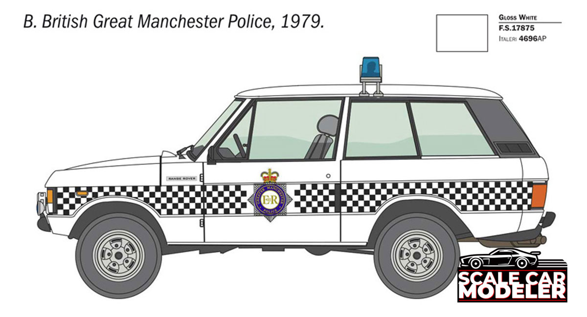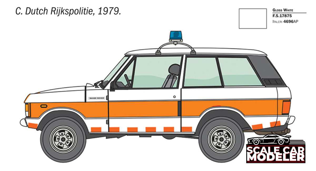 The Range Rover is a Skill Level 4 kit, however it is also a curbside build. I offers 3 different livery options - a 1980 British Police Transport, 1 1979 British Great Manchester Police and a 1979 Dutch Rijkspolitie.
