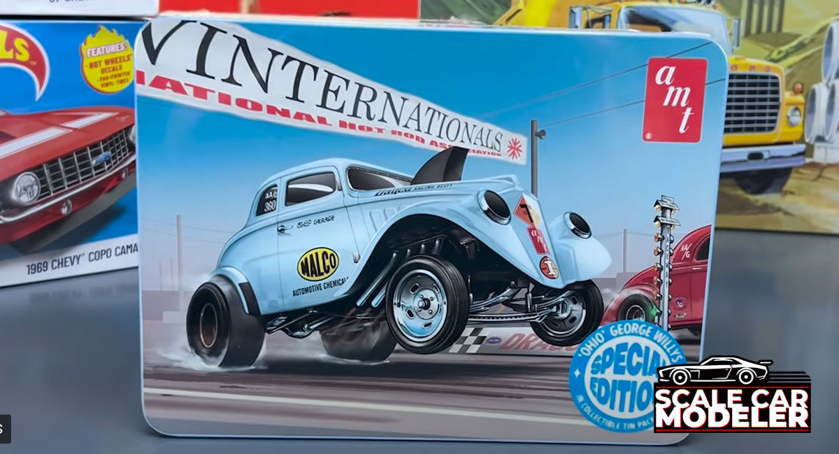 Then we have another Special Edition kit, the 1933 Ohio George Willys Gasser. This kit comes in a special tin flip-top 'lunchbox' style case - build the car, have a fun container.