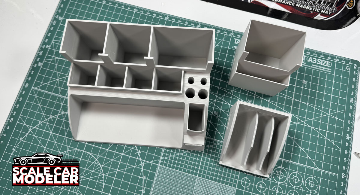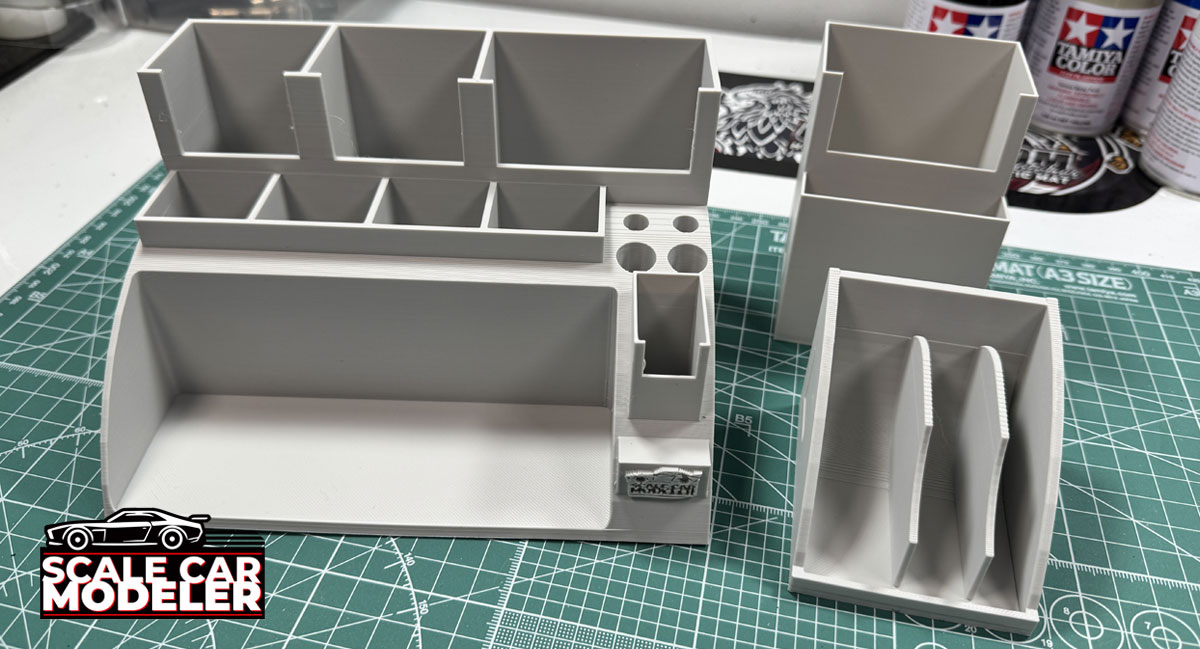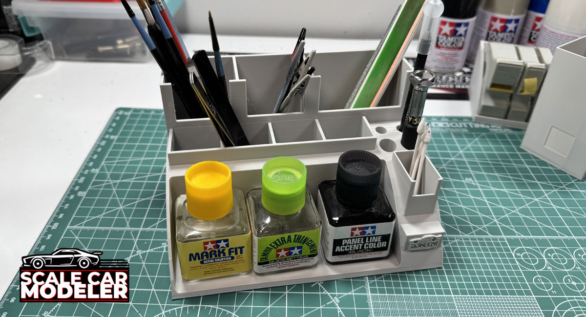 Scale Car Modeler would like to introduce our first 3D Printed product aimed at making Model Building a little bit easier. My first product, the Modeling Tool Workstation, is designed to organize all of your most used tools in one place. It is broken down into 3 separate pieces: